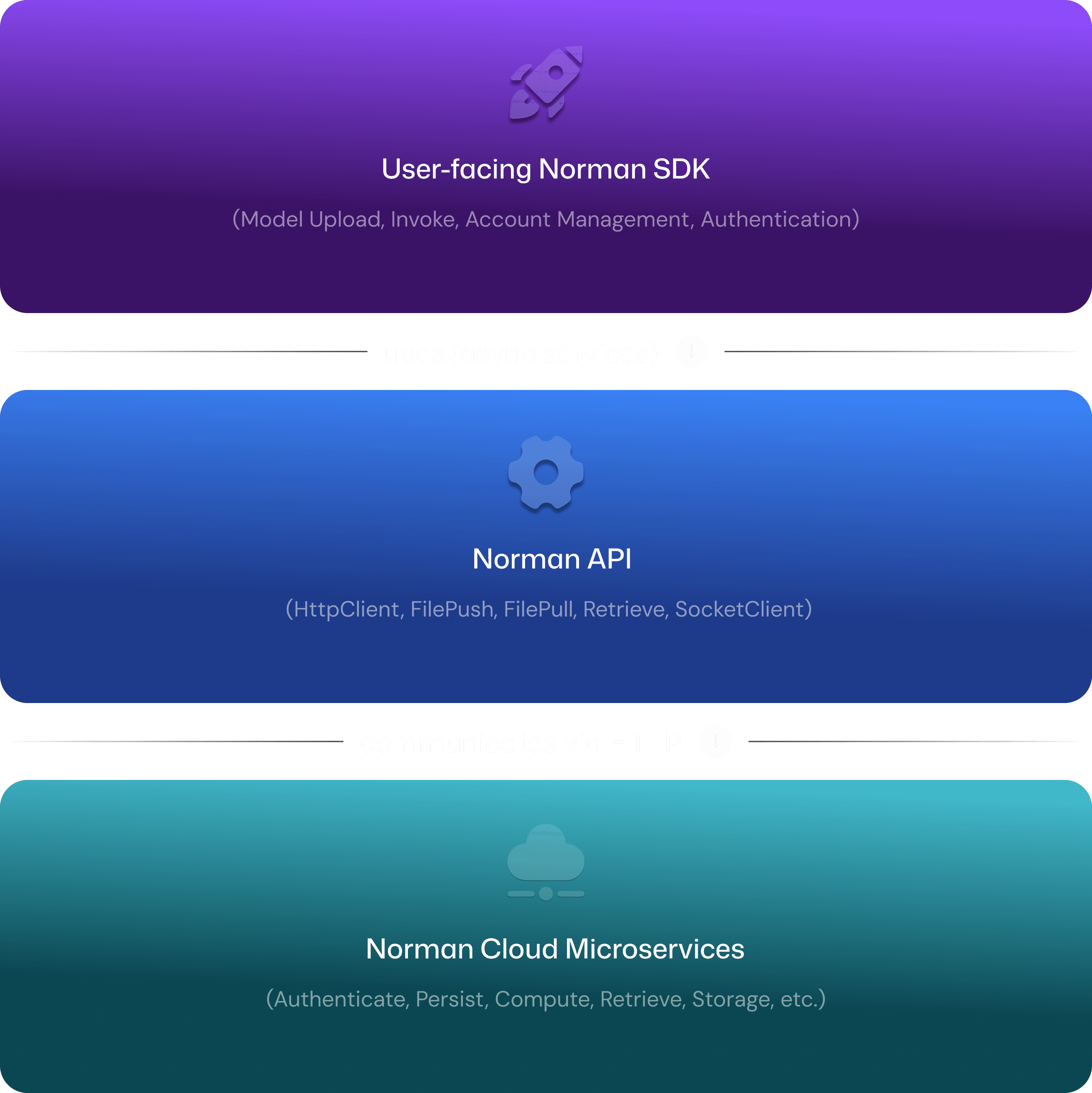 Norman SDK – the high-level, user-facing library for model upload, invocation, accounts, and authentication.